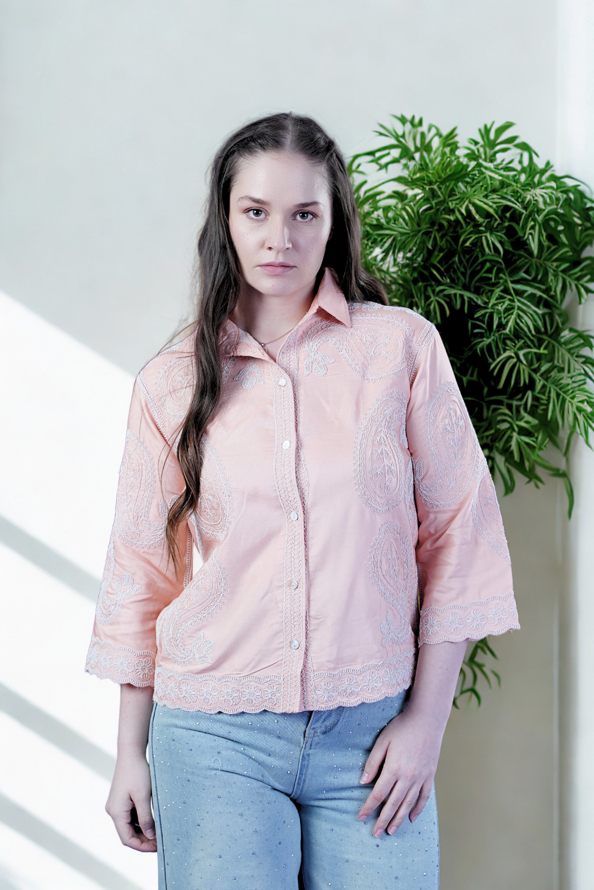 Step into soft elegance with the Peach Paisley Dori Dream Shirt, crafted in a soothing peach hue that instantly brightens your look. Designed with intricate dori embroidery and delicate paisley motifs, this shirt celebrates traditional artistry in a modern, wearable silhouette.